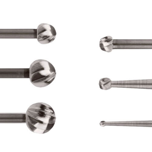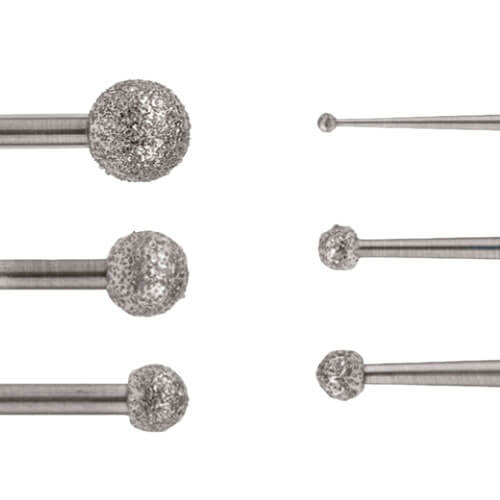 • Brocas diamantadas com grãos finos: Proporcionam melhores possibilidades de escultura, com acabamento preciso e menos agressivo ao tecido, garantindo maior delicadeza e eficiência na cirurgia.